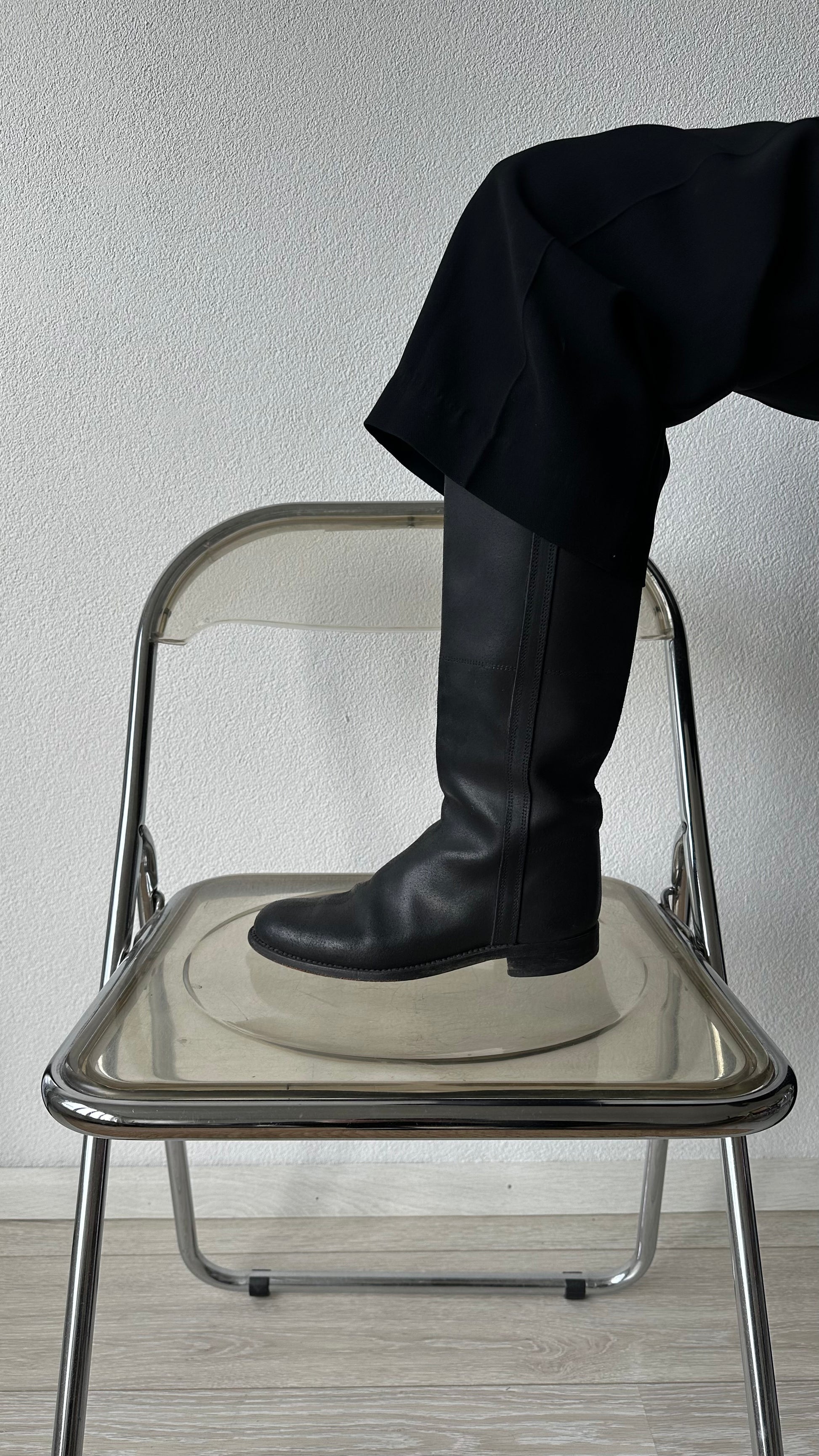These black leather boots tell a story of style that has already begun.