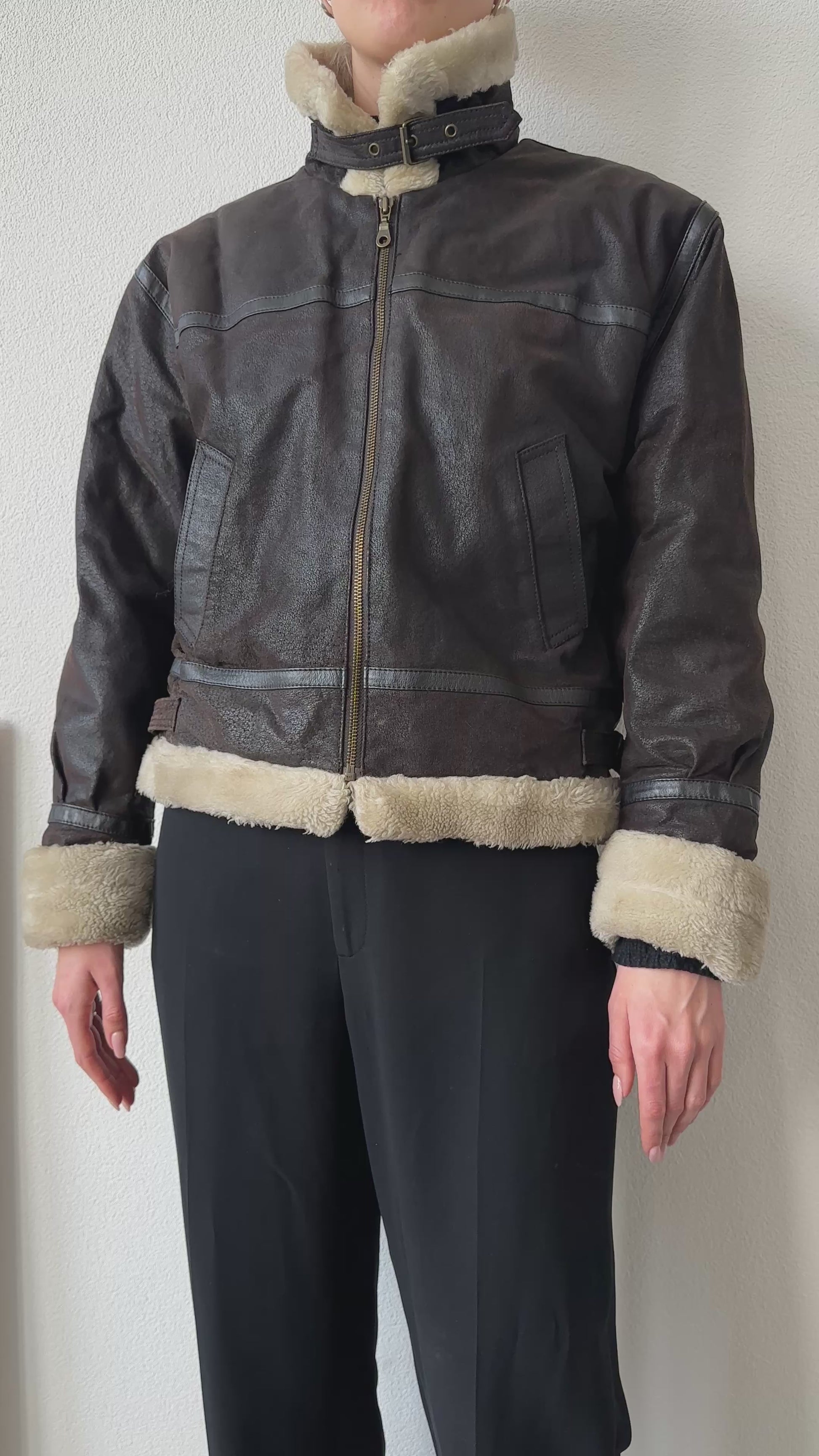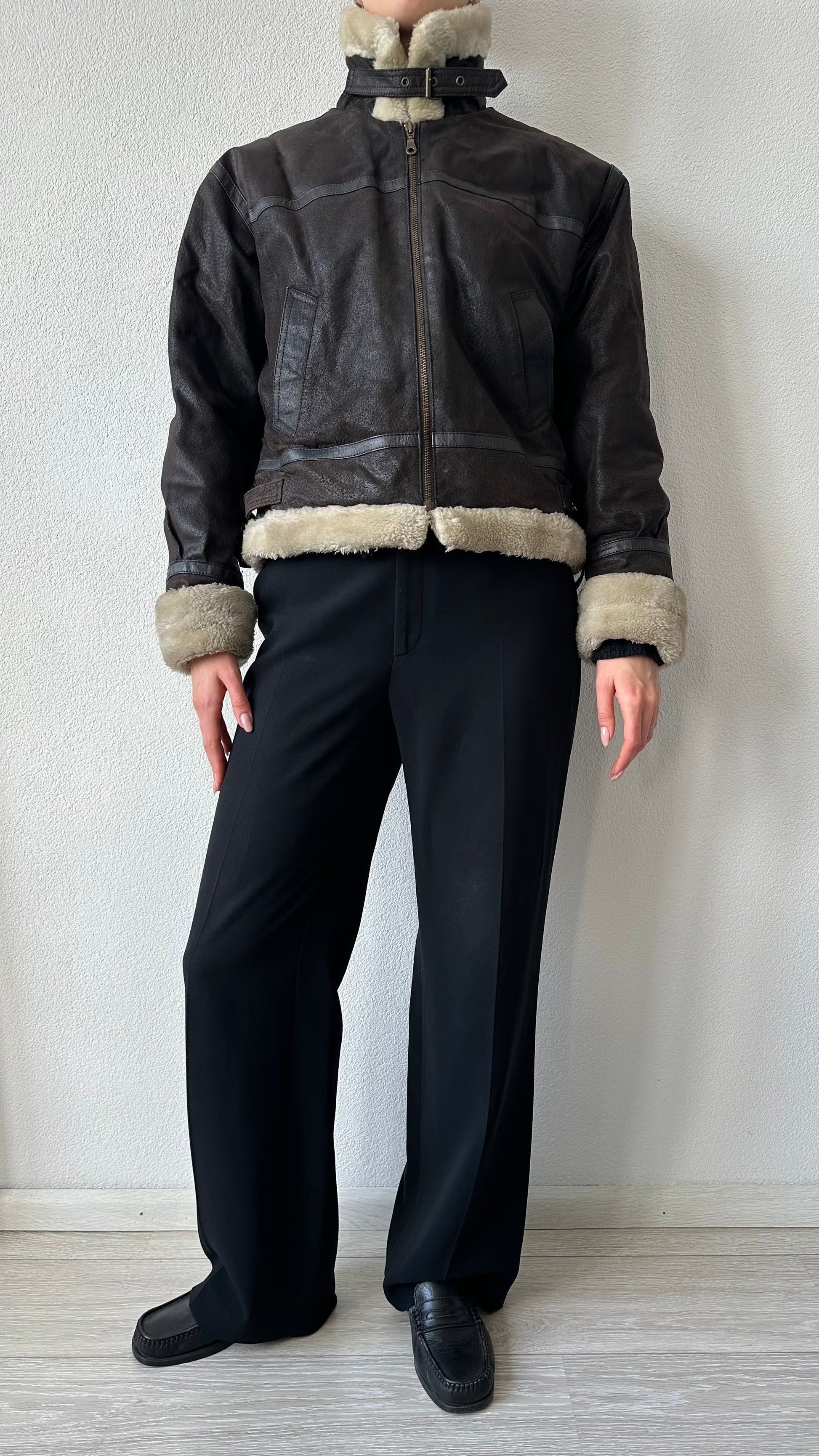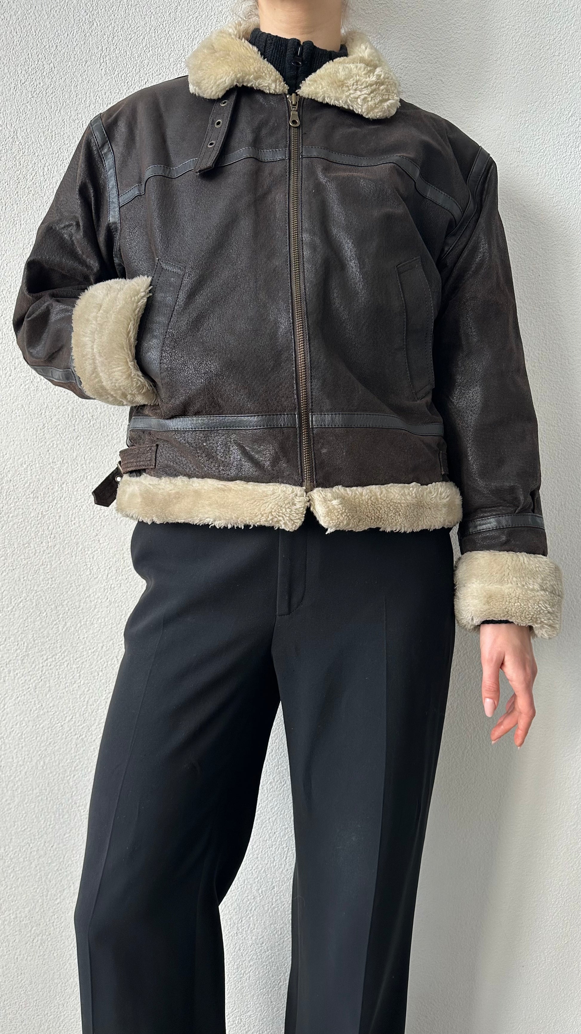 brown leather aviator lammy jacket