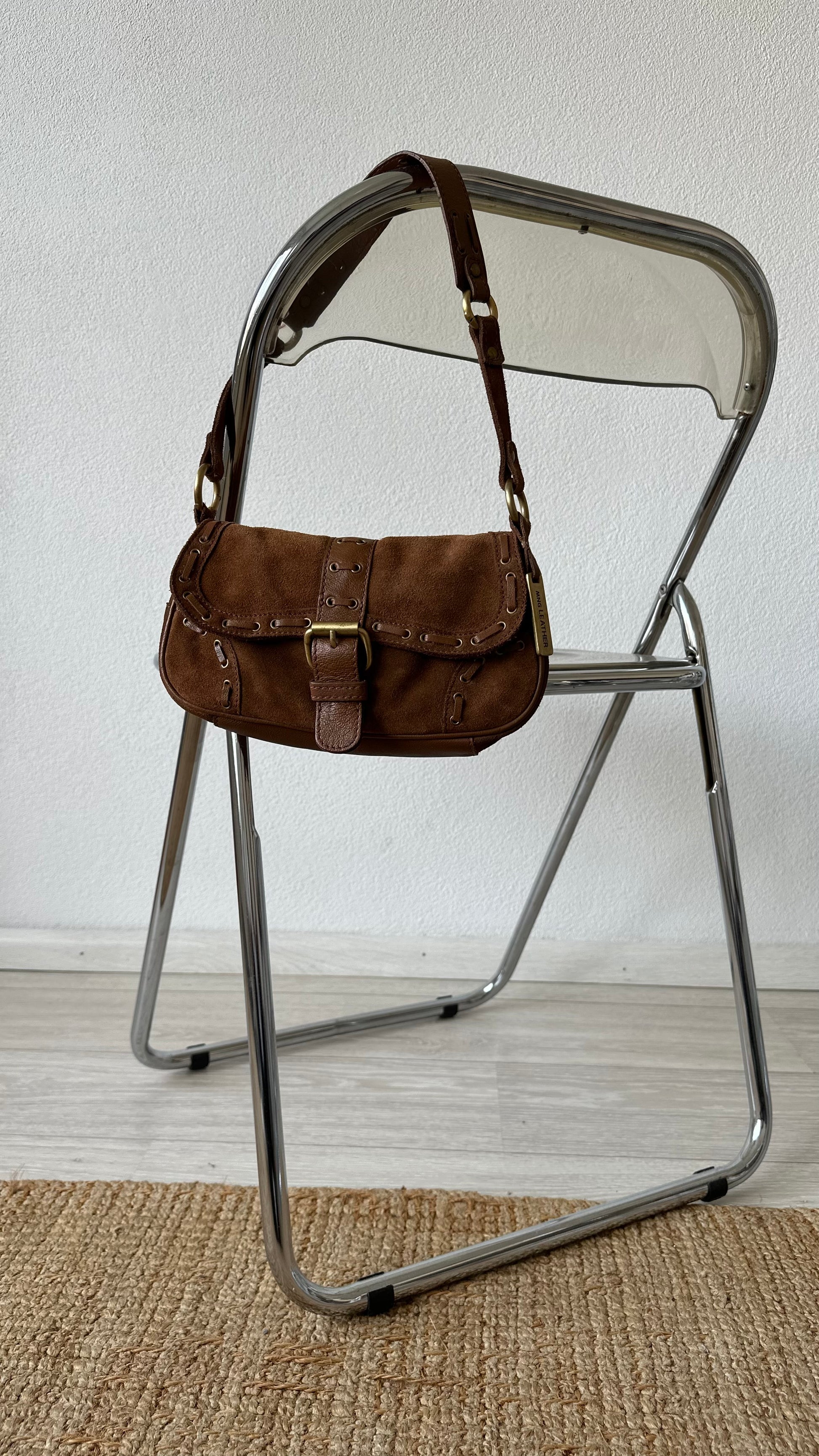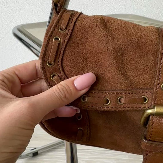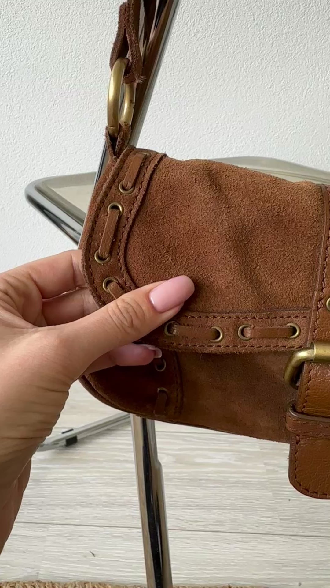 This brown suede and leather shoulder bag is a timeless piece designed for everyday wear. The mix of rich suede and smooth leather gives it a unique texture and a slightly vintage feel. Its warm brown tone is easy to match with both casual and dressed up looks, making it a versatile addition to your wardrobe. The size is just right for carrying the things you need while staying light enough to wear all day.