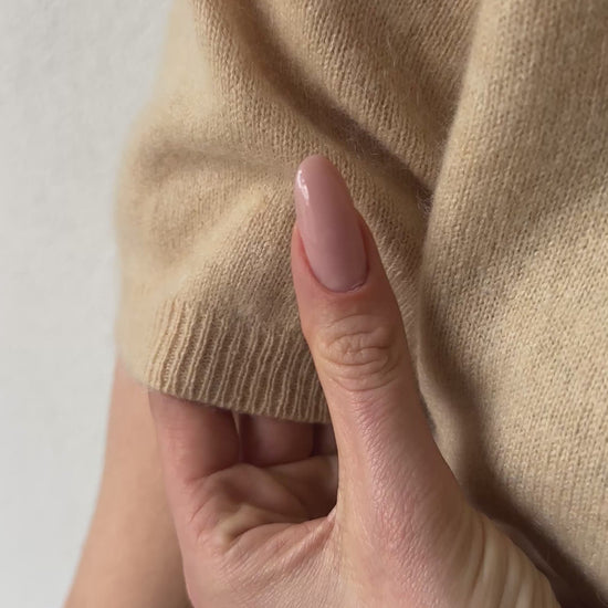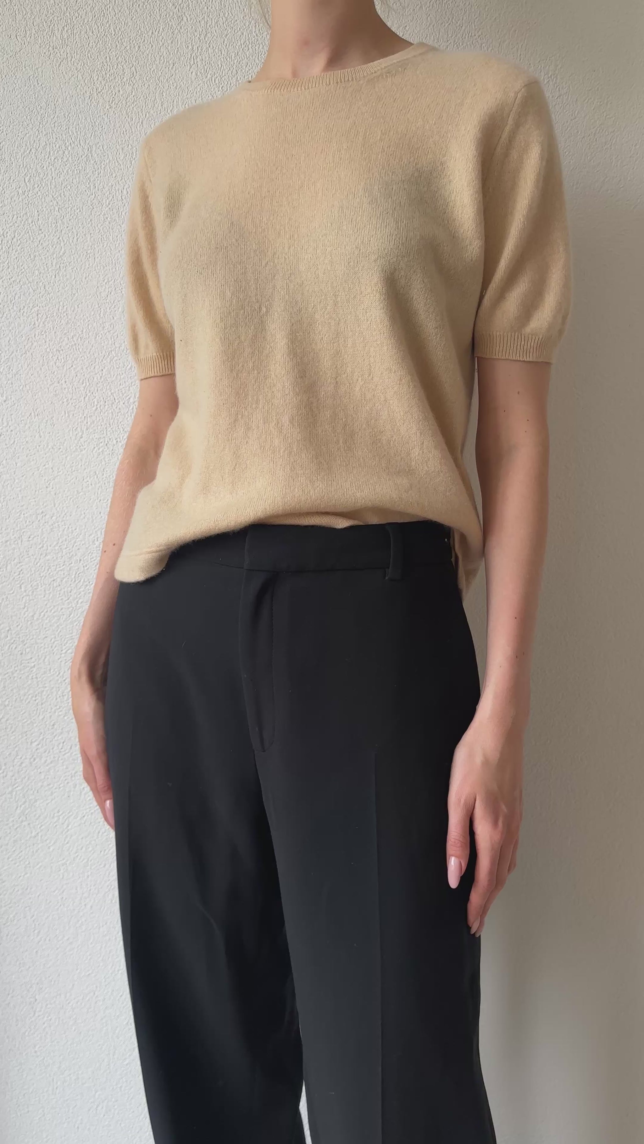 This beige cashmere top with short puffed sleeves is soft, feminine, and beautifully made.