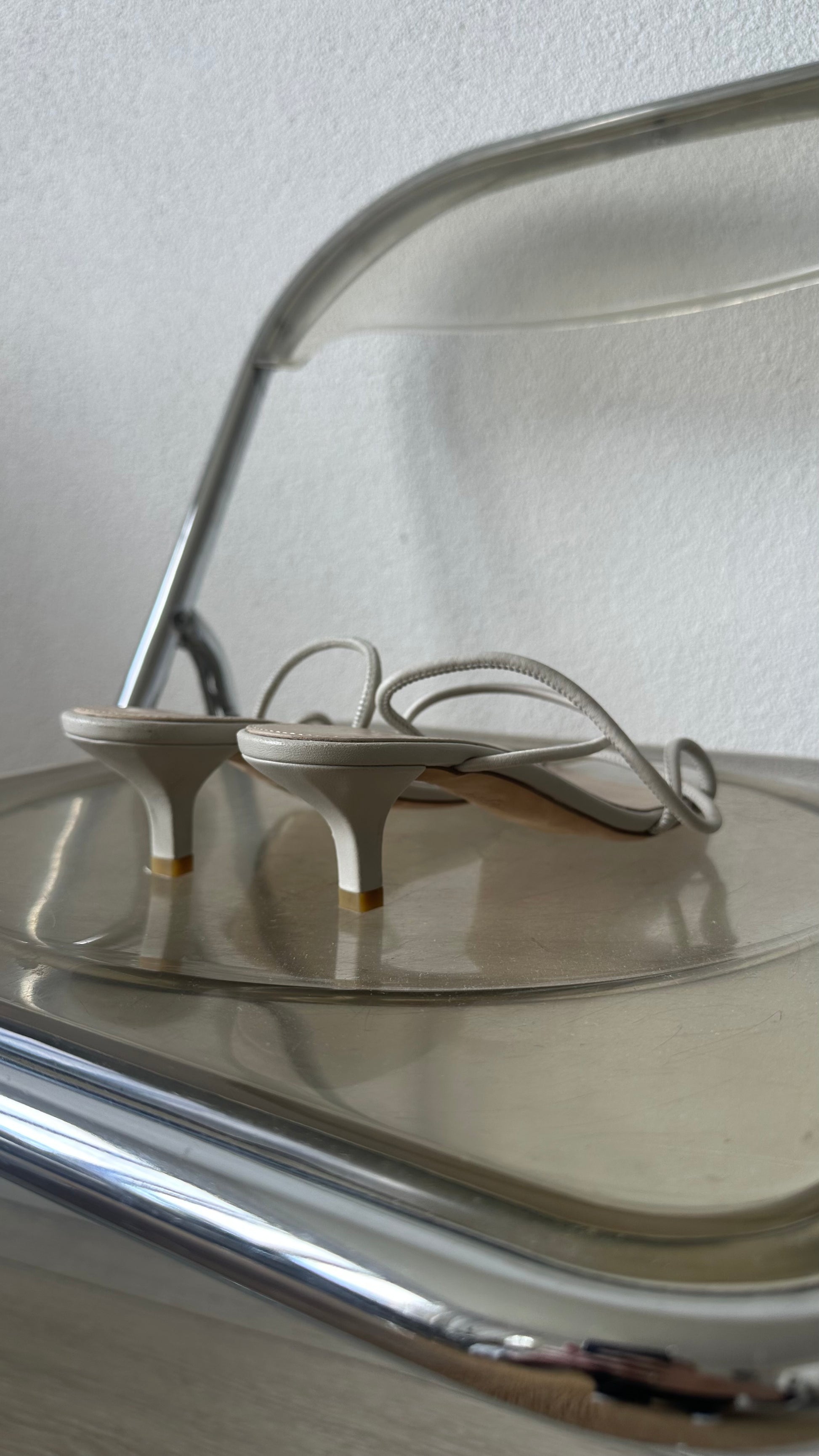 The slim straps frame the foot beautifully while the low kitten heel adds just the right amount of lift for all-day wear. Crafted from smooth leather, they balance comfort with style and work with everything from tailored trousers to flowing dresses.