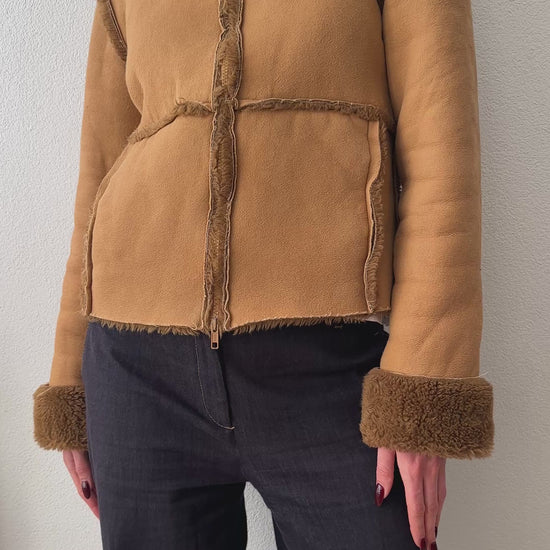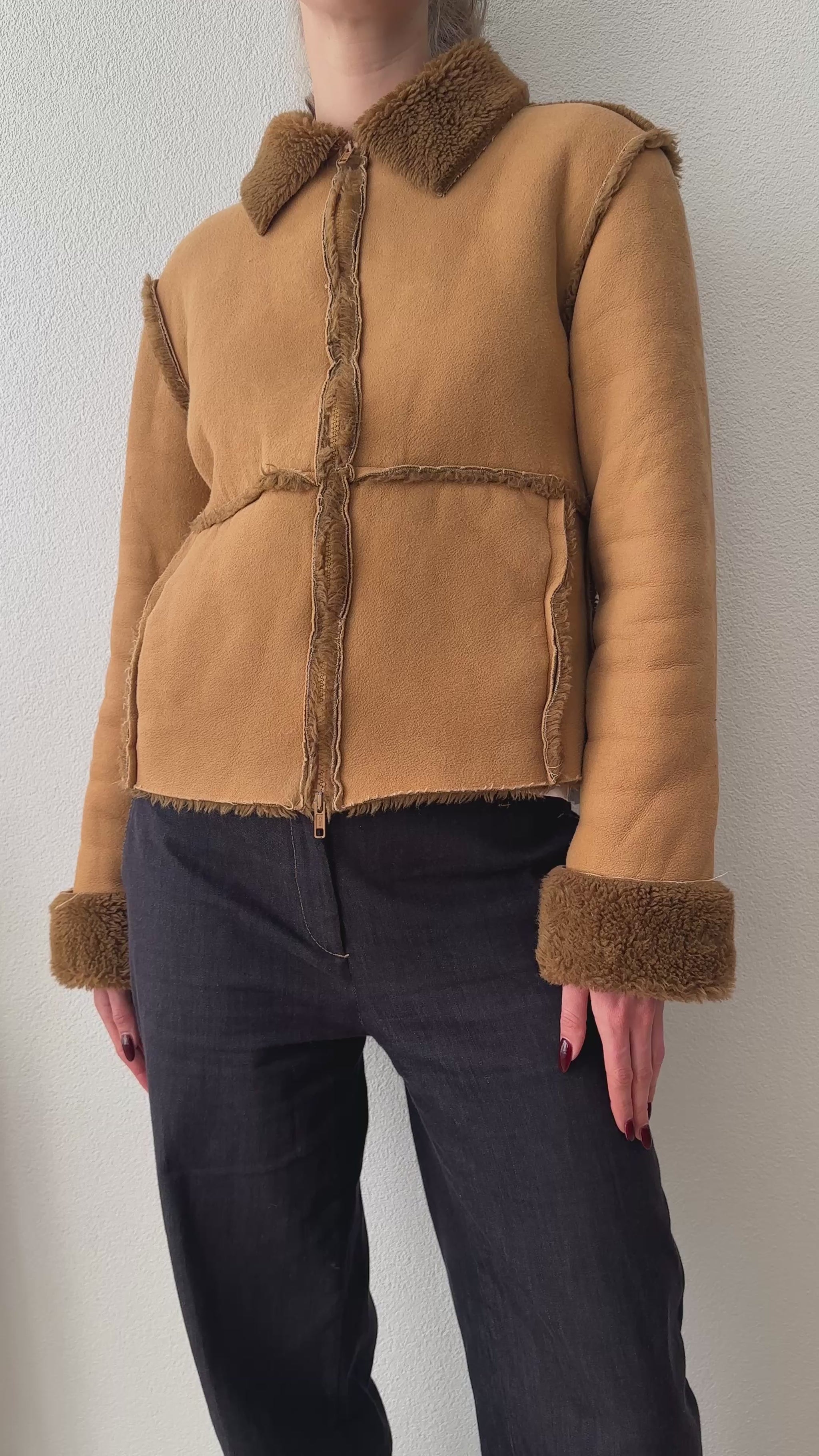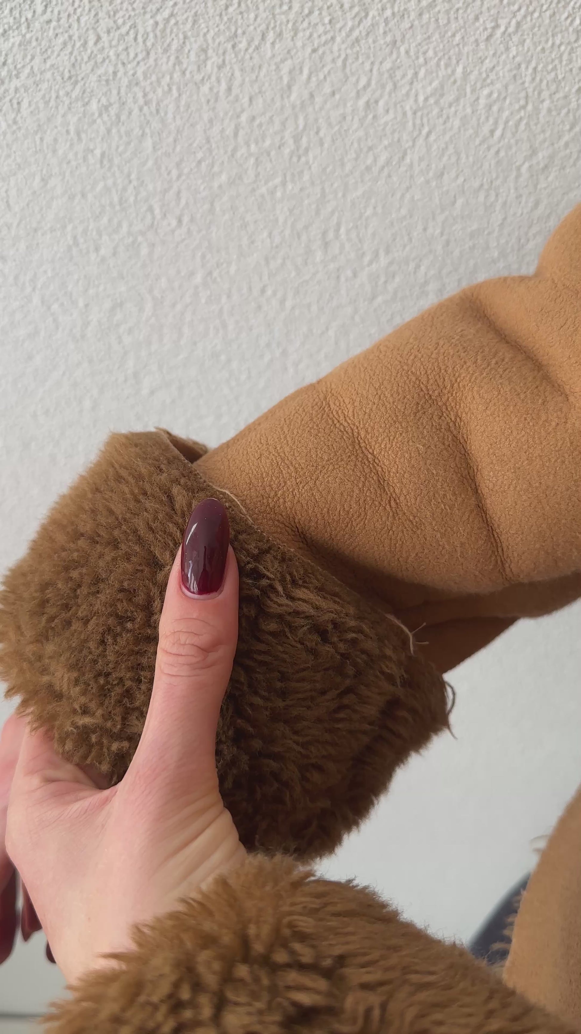 The outside has a suede like texture that feels nostalgic and the inside is lined with thick, soft faux shearling that keeps you warm through the colder months. The cut is relaxed but not oversized which gives it a wonderfully flattering silhouette that works with both casual and more polished outfits. It is the coat you grab when you want to feel cosy without losing your sense of style. A piece that reminds you of long winter walks, early morning markets and slow weekends. Because it is preloved it already carries a sense of history which only makes it more special.