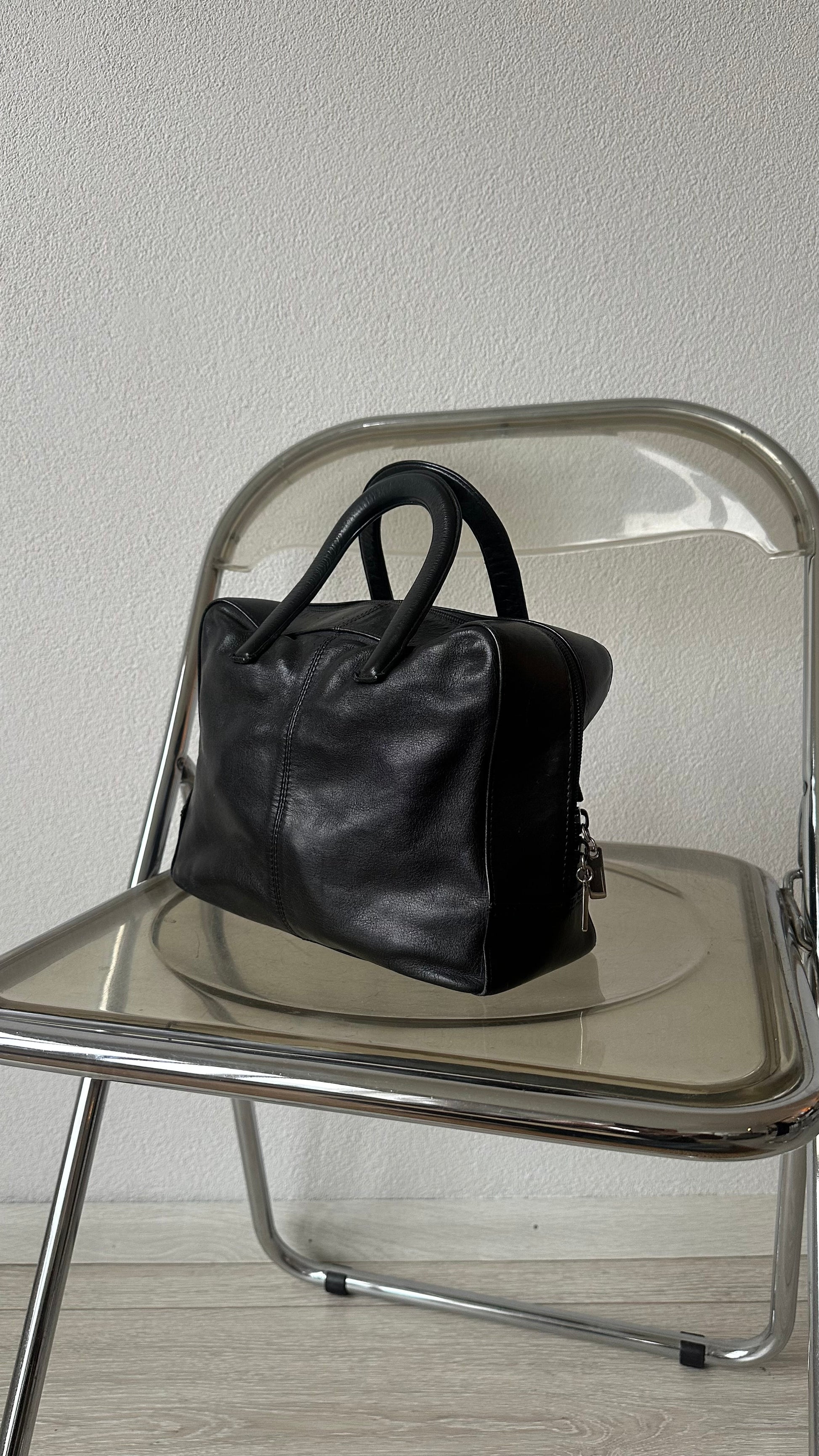 leather black small square handbag