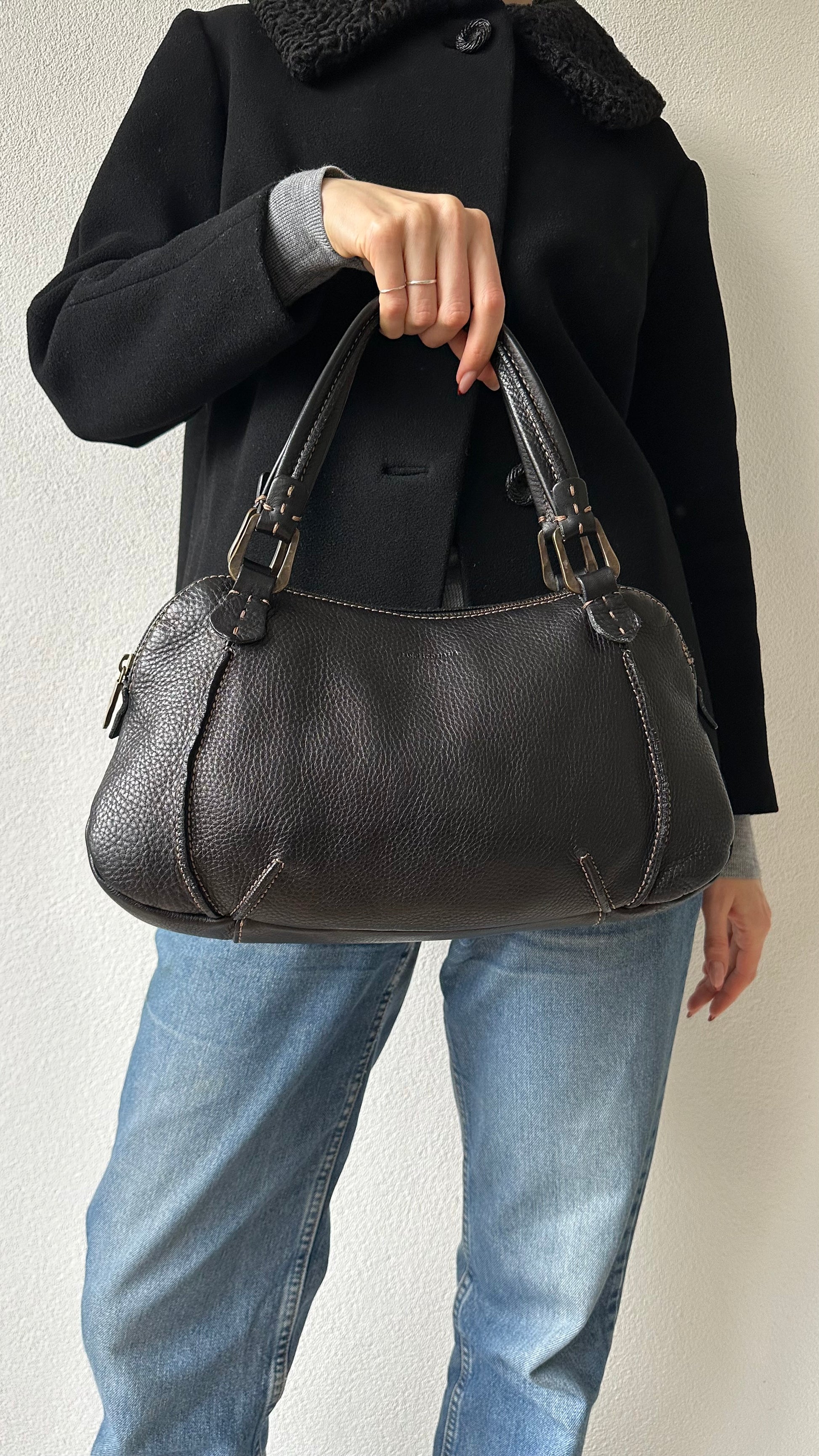 leather francesco biasia handbag with golden hardware