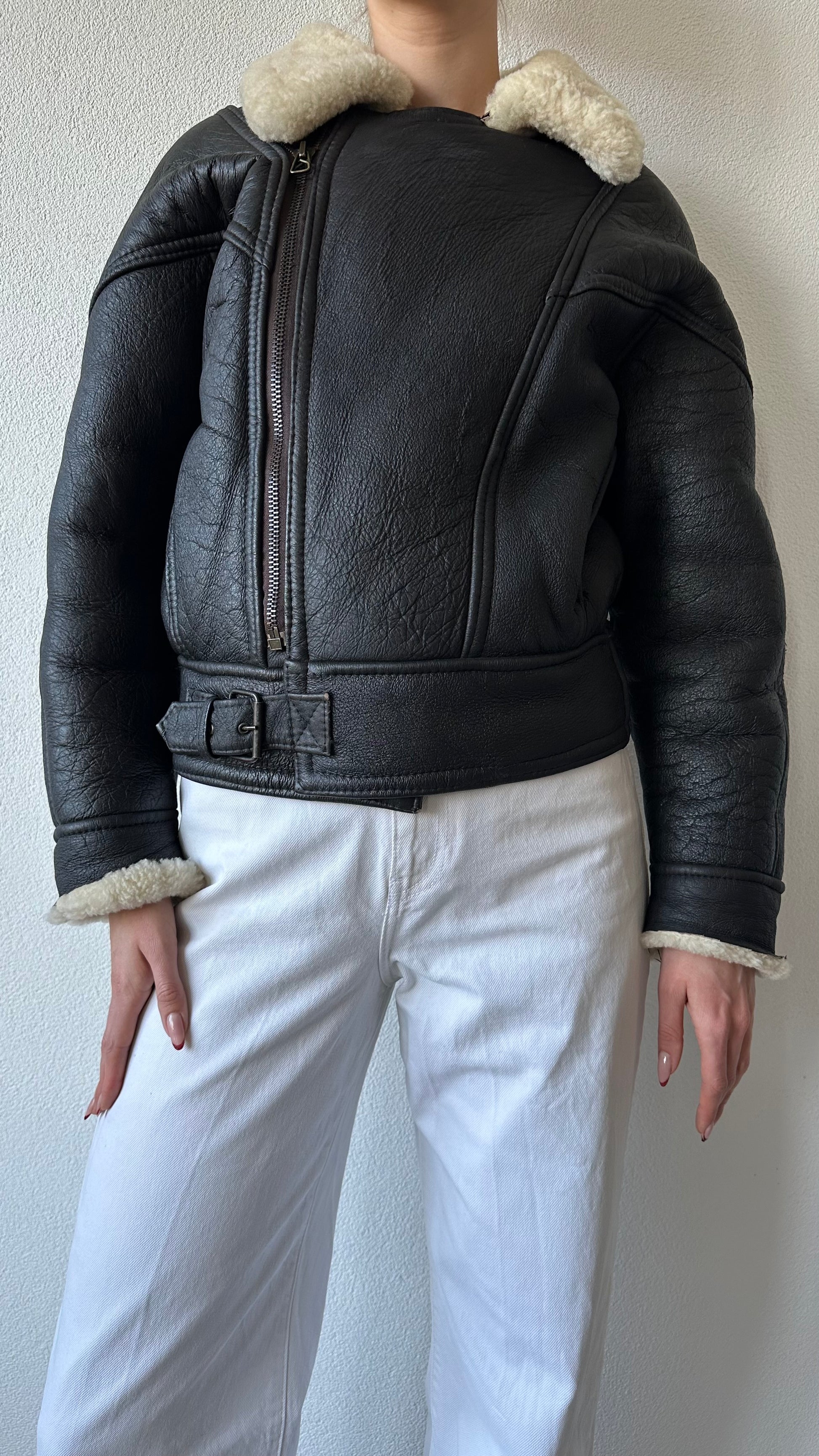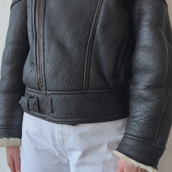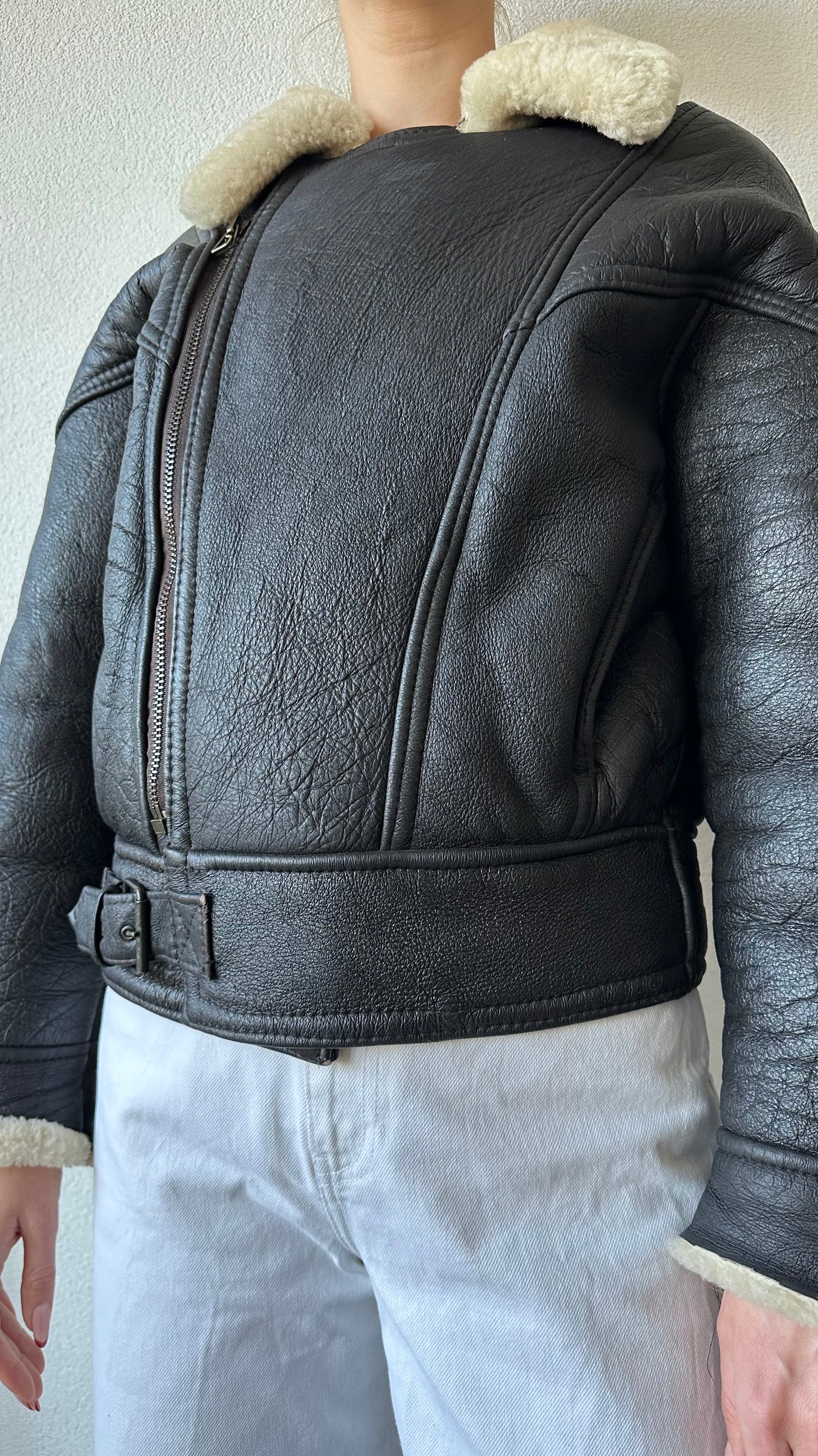 The outside is finished in deep black, while the beige lammy lining adds warmth, texture and visual softness. The combination creates a coat that feels both bold and comforting at the same time. Naturally insulating and incredibly cozy, this piece is made to keep you warm on cold days without compromising on style. As a vintage item, it carries a sense of uniqueness and craftsmanship you will not find twice.