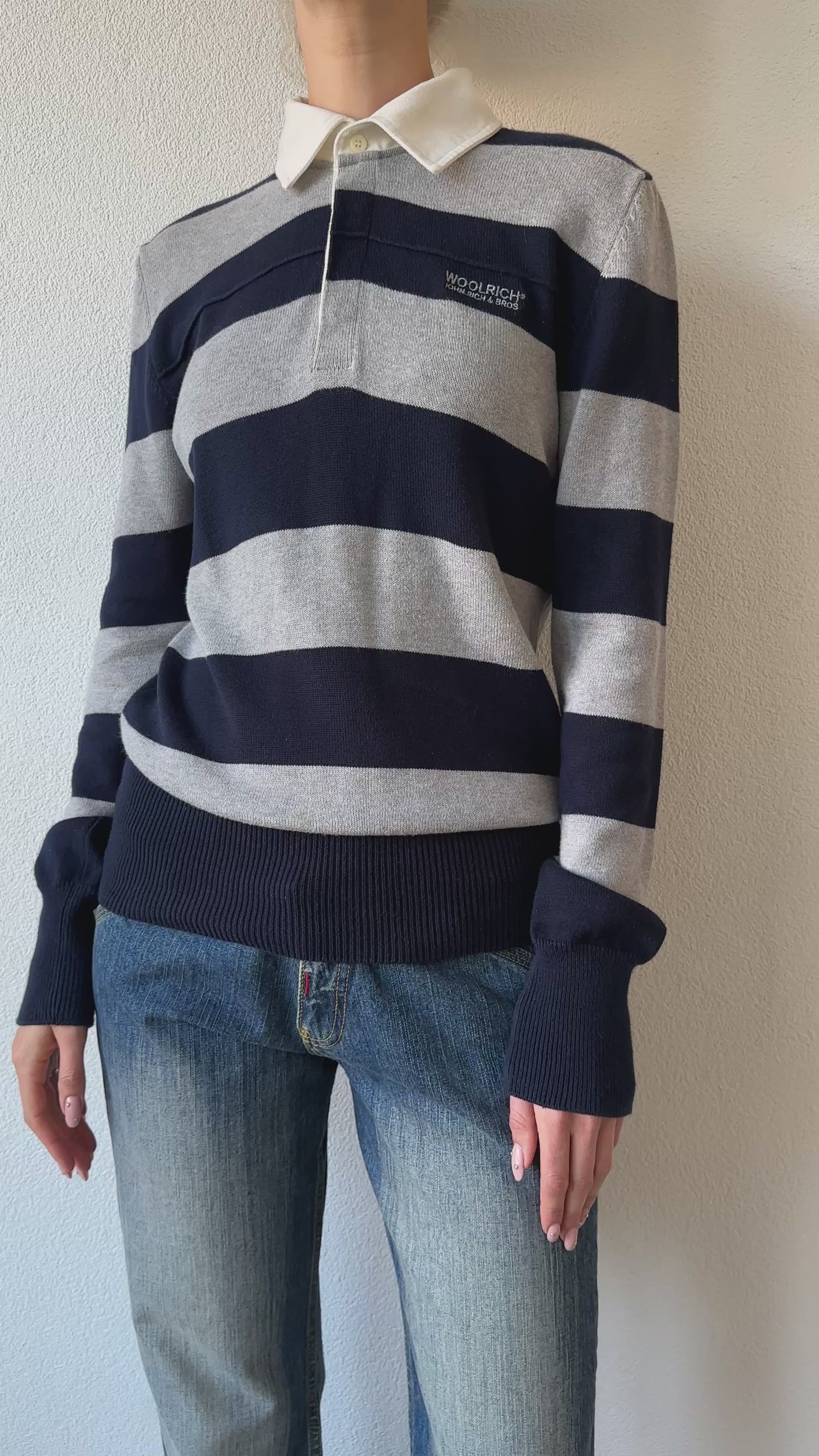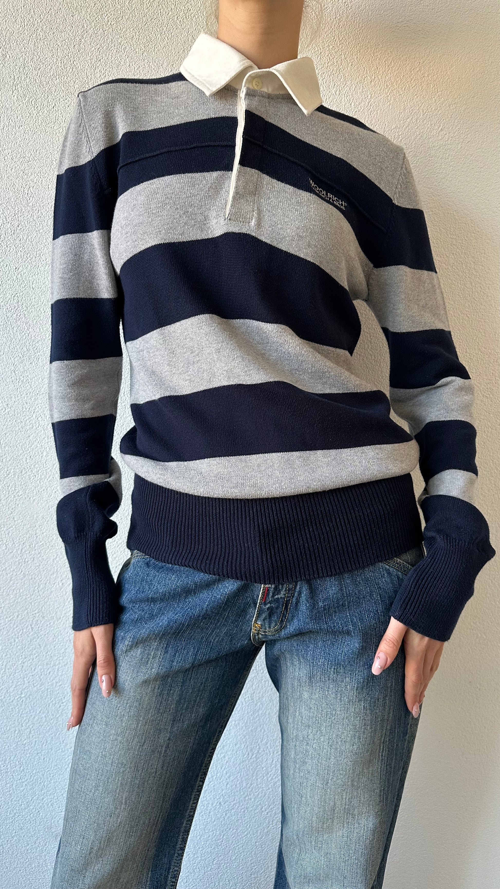 striped grey and blue knitted Woolrich longsleeve polo