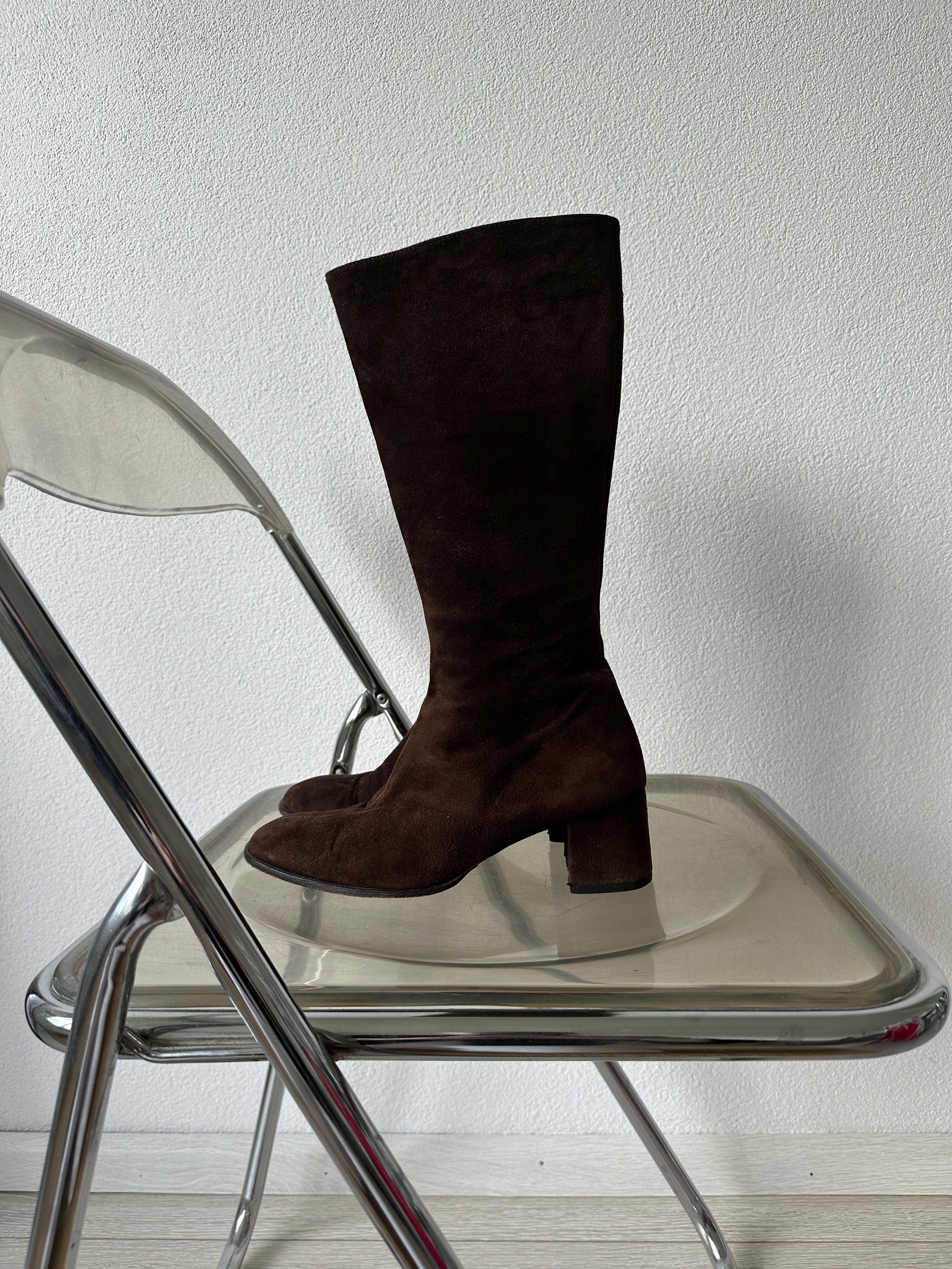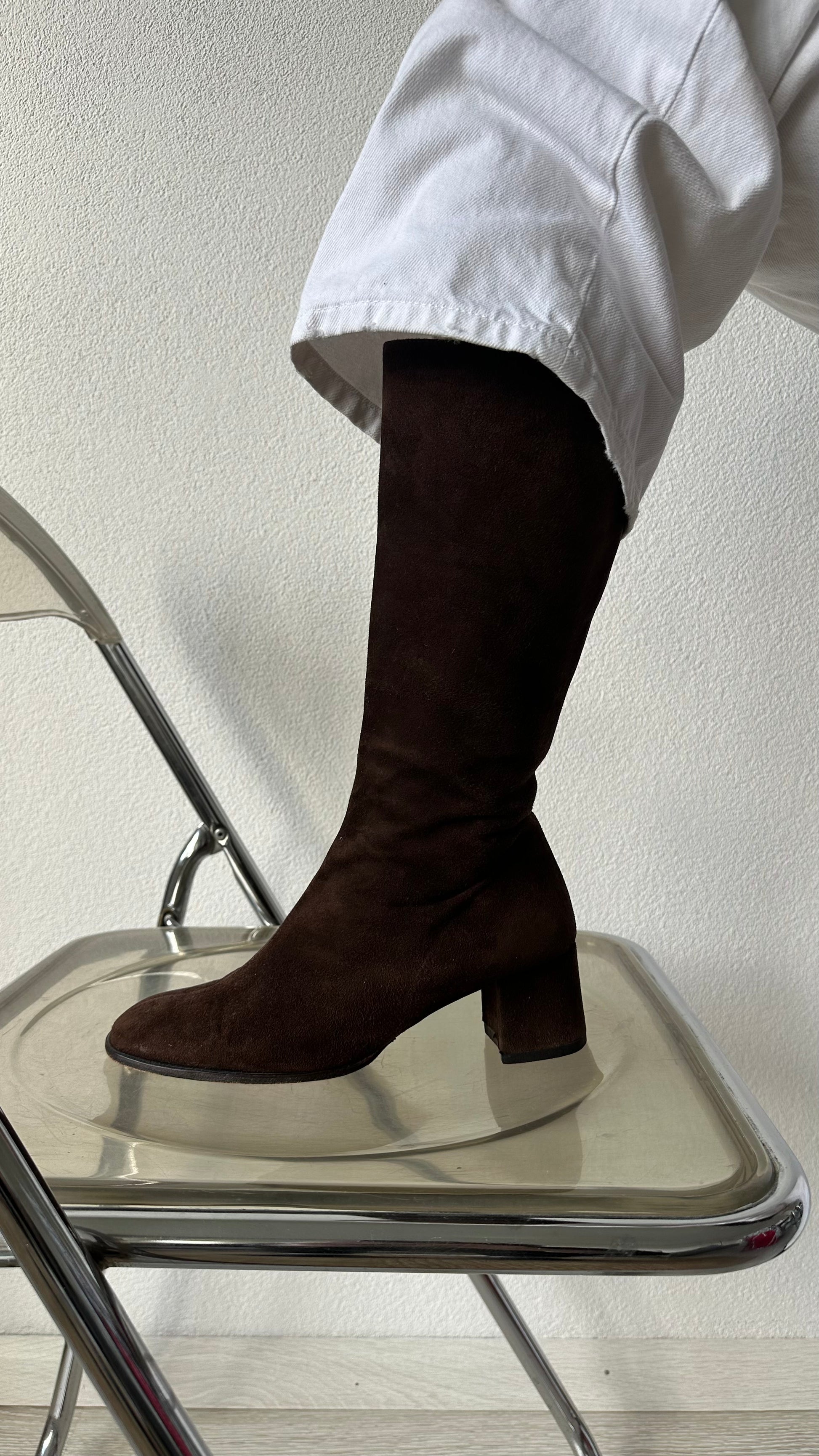 The soft suede has a deep, warm tone that pairs effortlessly with almost everything in your wardrobe. They feature a comfortable block heel and a round toe that gives them a timeless silhouette, while the inside zipper ensures they are practical and easy to wear. Perfect for long walks in the city or cozy evenings out, these boots balance style and comfort in the best possible way. Wear them with jeans and a blazer for a casual day look, or with a midi skirt and coat for something more refined.