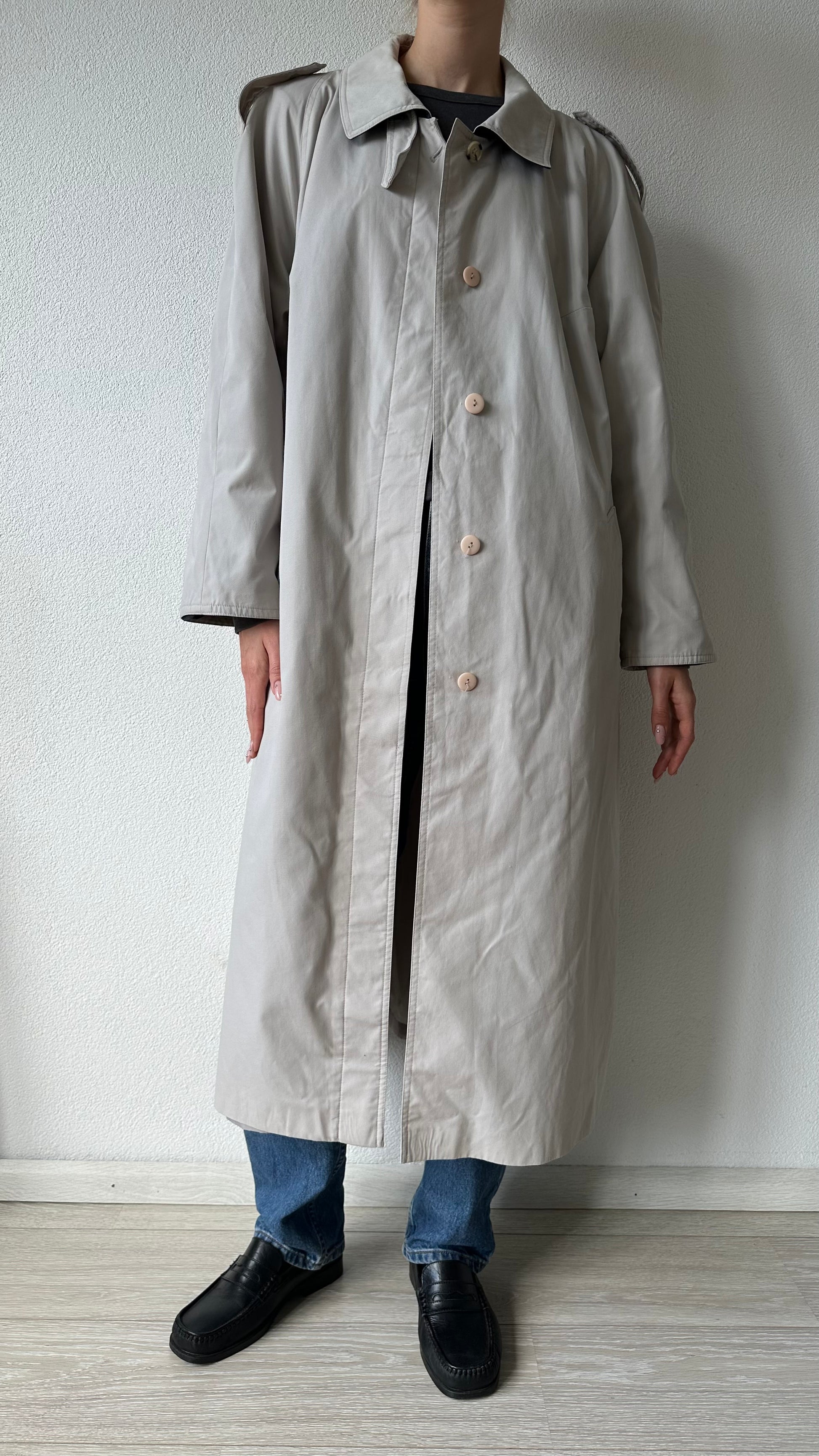 This vintage beige trenchcoat is the definition of timeless elegance.