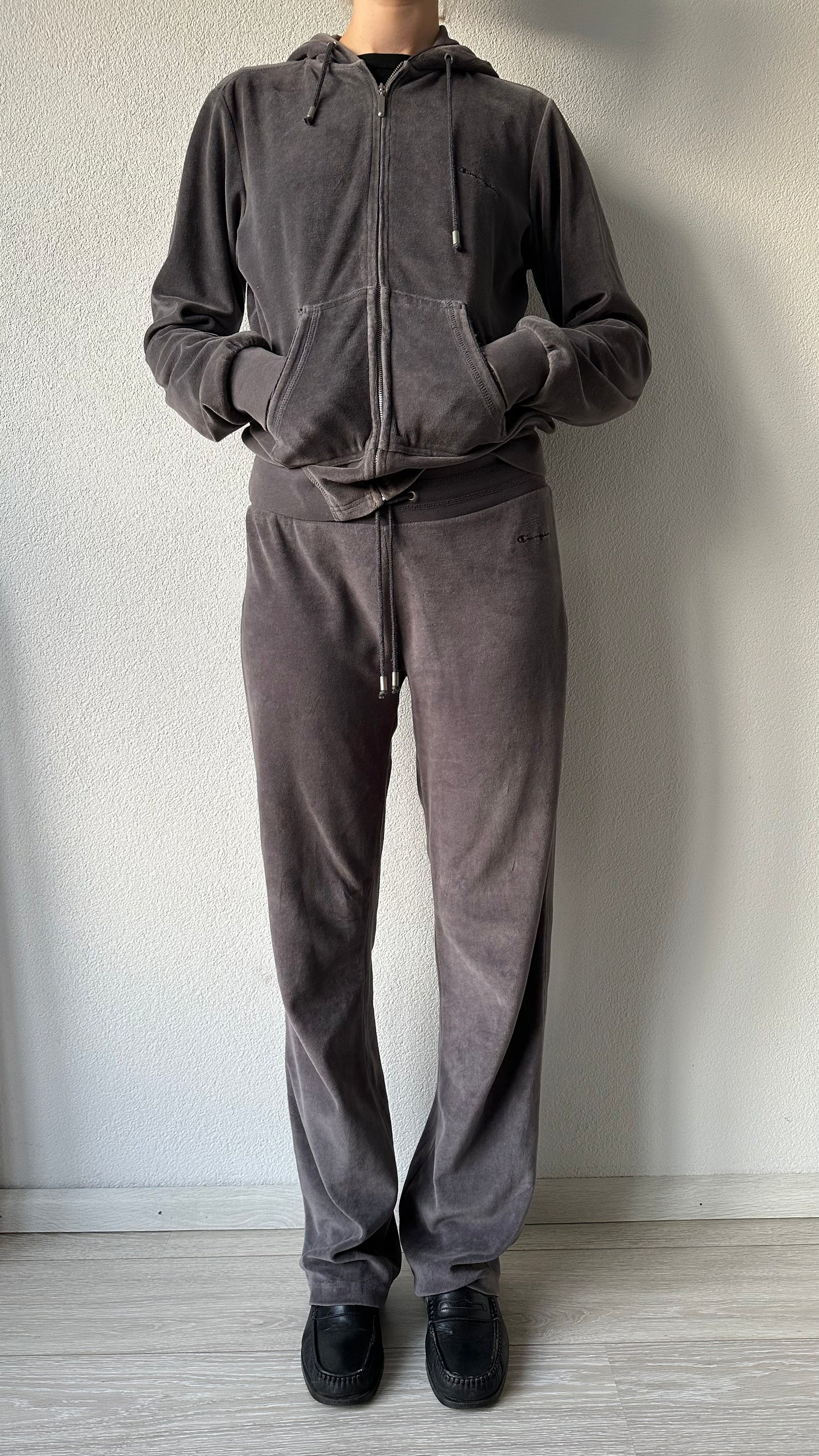 This Champion velour tracksuit is a two-piece set made from plush velvet fabric that feels as good as it looks. Comfortable, relaxed and slightly nostalgic, this set balances sporty heritage with cosy elegance. Wear it together for an effortless off-duty look, or style the pieces separately with denim, knitwear or tailored outerwear.