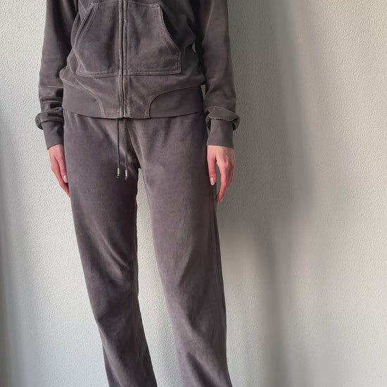 The velour texture adds warmth and depth, making it perfect for colder days when comfort is non-negotiable but style still matters.