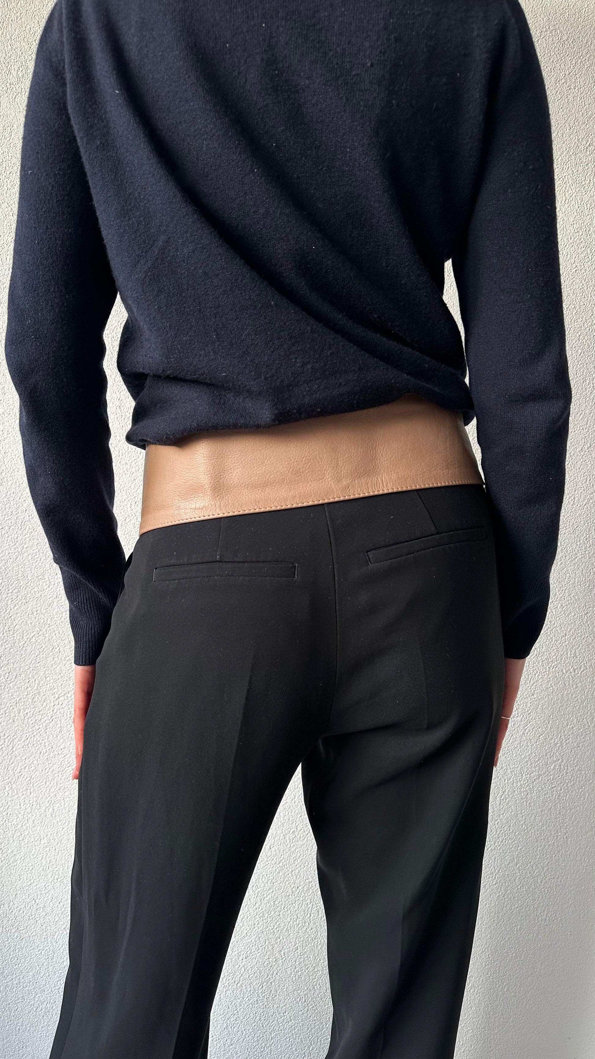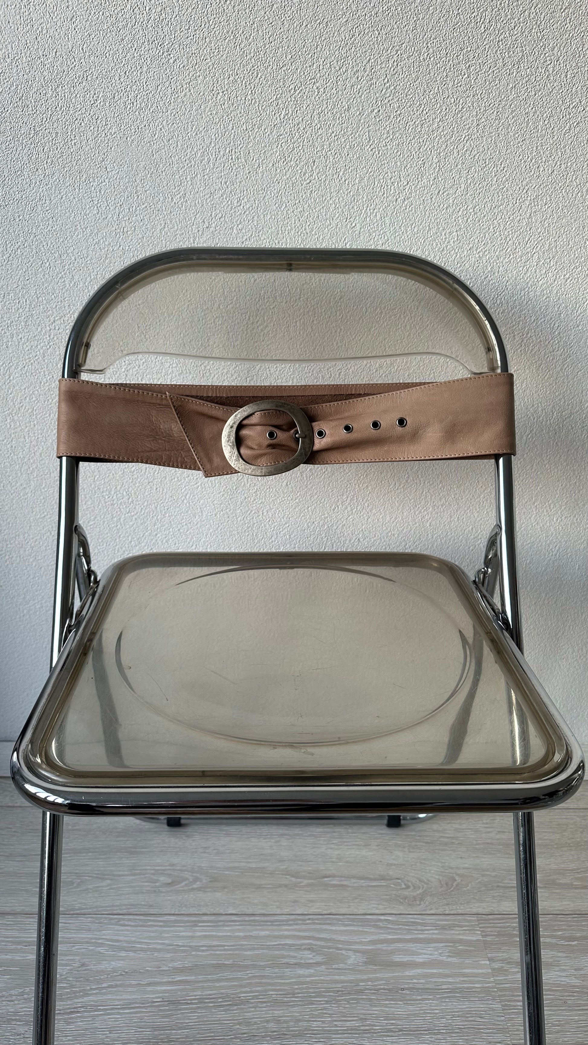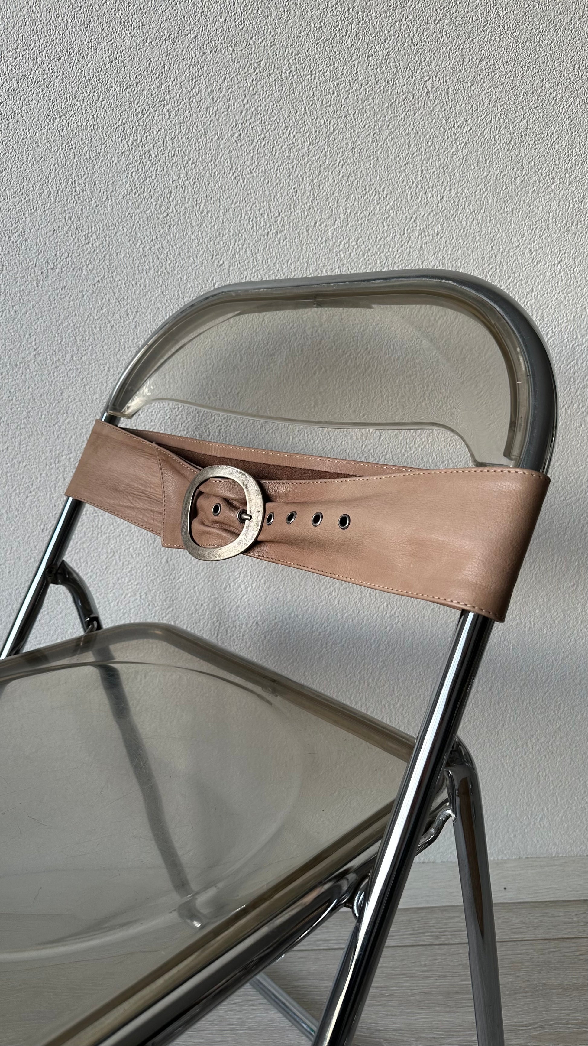 Made from sturdy leather with a beautifully worn-in look, it adds structure without feeling too polished. The neutral beige tone makes it easy to style with coats, dresses, knitwear or oversized blazers. Perfect for cinching the waist or adding contrast to darker outfits, this belt proves that accessories can completely change the feel of a look.